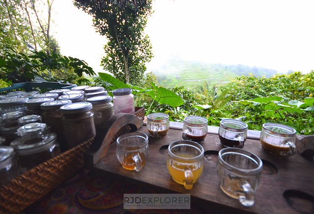 Bali Coffee Plantation is along the way and since it started to drizzle, a nice coffee tasting experience is perfect as per our guide. There is a quick tour around the plantation and demo of how the coffee luwak (civet) and other types of coffee are produced. At the end of the tour is a coffee taste test with several versions like ginseng, ginger, and Bali coffee among others. The view of the terraces on the background adds a Banaue-like feel to the experience. We also tried the civet coffee, for IDR50,000 (~USD3.5), brewed in a special brewing machine. The plantation also has a souvenir shop where you can buy bags of coffee beans, granules, or powder.