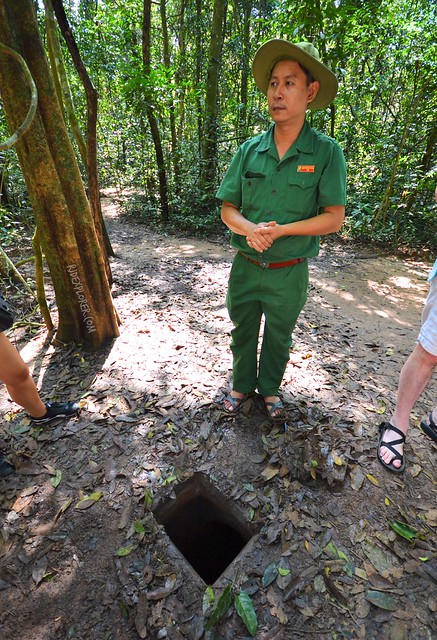 I requested for the instructions to be repeated and asked if I can also go inside the tunnels. A couple volunteered to take my stuff and document my stint. The channels are dark and tight and remembering the directions is the key to surviving it. Apart from the tunnels, other things to uncover on your visit to the Cu Chi Tunnels are some booby traps, bunkers used for surgeries, kitchen, and meeting rooms.
