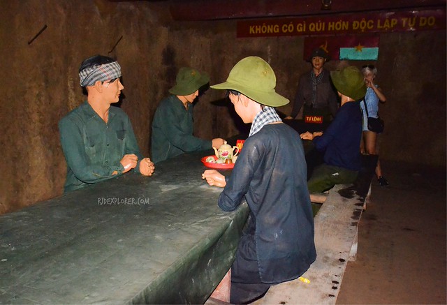 There are also mannequins everywhere that depict scenarios during the war. If the tight opening is not a good way to enter the tunnels, another network already has stairs going down. But still, you need to dock and fit yourself into the close-fitting spaces for you to get out. The guide again challenged the bold members of the group to try the longest route, which is a 30-meter long passage. I followed and entered the tunnel last. My legs were trembling after I got out of the pit as it requires you to duck and literally walk like a duck to continue with the route.