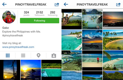 He considers himself as “a freak for adventure, challenges and exploration.” Gabz features his travel adventures on his blog pinoytravelfreak.com. Most photos on his account are seascapes of long stretch of beaches, sandbars and islands. I also found his pictures of sunsets really amazing with the way he captures the dimming rays of the sun.