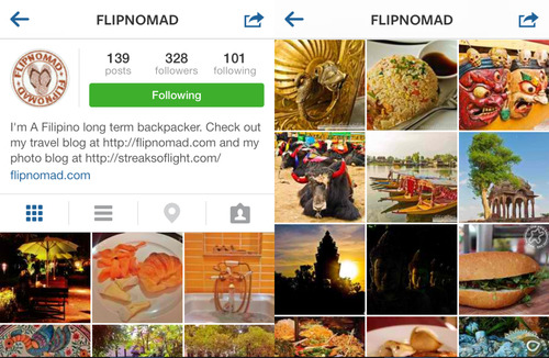 Flip is a long term backpacker who started blogging on flipnomad.com in 2009. He believes that “Traveling starts when we close our eyes and open our minds to all the possibilities in this journey called life.” You can travel with him by following his account that highlights some of his travel moments such as drinking a cup of coffee, hanging out on a nearby river, having his laundry, and thoughts about traveling.