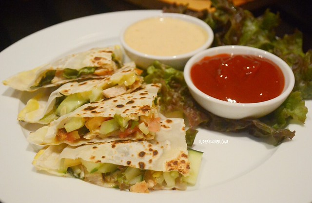 During the afternoon, the restaurant offers Filipino Merienda with three trays of Filipino’s usual afternoon snack like pancit palabok, camote balls, Cebuano torta, dinuguan, kutchinta, cassava cake, biko, and a lot more. I love pancit palabok and it was a hit for me pairing it with the soft puto that should be paired for the blood stew (dinuguan). The afternoon snack is available every day from 2 PM to 6 PM together with creating your own pizza from a selection of delicious toppings on an 8” pizza served with a pitcher of iced tea for Php250. Try the sisig pizza!