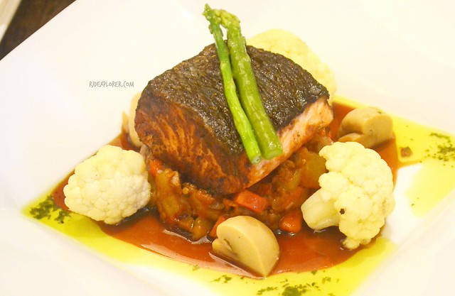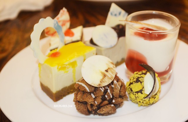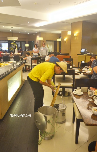 With all the buffets, ala carte dining is also available. For dinner, we shared plateful surprises such as Sarimanok (chicken breast rolled and stuffed with ham and cheese served with spaghetti of vegetables and mango sauce), Salmon Teriyaki (marinated in honey-teriyaki glaze and served with Japanese spring vegetable ragout), and Cebuano Pochero (traditional Cebuano clear ginger soup of beef shank, sweet corn, bamboo shoot, and native pechay).