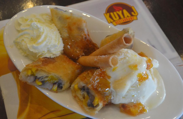 If you’re wondering how they fried the halo-halo, the common ingredients of the cooler were bundled in a spring roll wrapper, and then deep-fried. The dessert was served with whipped and ice cream on the side.