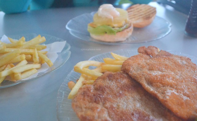 The option includes burgers, rice meals, and desserts. We tried the Hawaiian Burger, Schnitzel with Fries, and their Halo-halo. Service was a little rattled; food was served after numerous follow-ups, and utensils and condiments are not given at the same time.