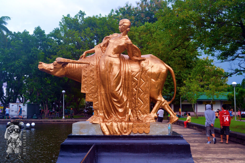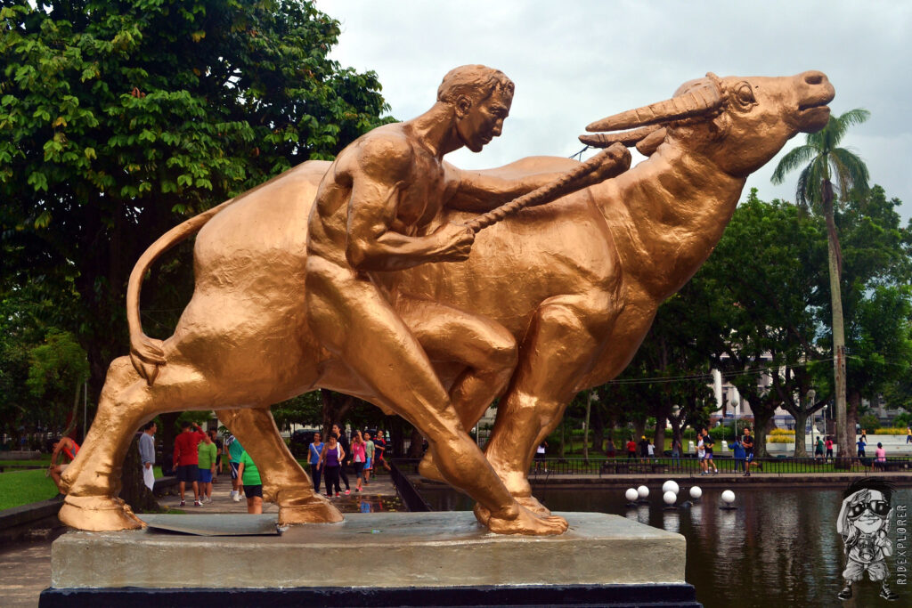 Aside from the capitol building, features of the park include the golden sculptures of two water-buffalos at both ends of the lagoon and Paghimud-os monument (no photo available) located at the entrance on the Lacson Street side. The water buffalo on the south side of the lagoon was being held by a woman and the other one was being pulled by a naked man.