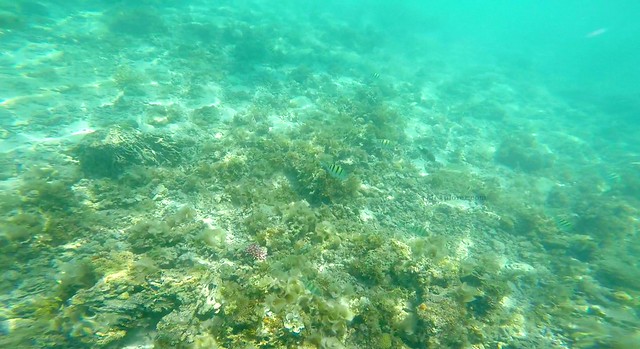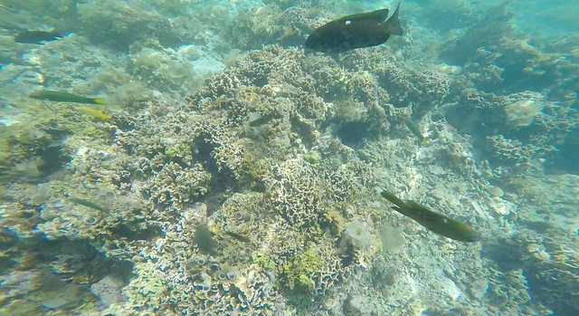 For us to enjoy the entrance fee we paid, we went out of the comforts of our cottage and started swimming on the sparkling, clear waters. We started to appreciate the beauty of the island with the fine sand and the inviting waters. A few meters from the shore were fishes of different kinds swirling on some corals. I took some underwater photos of the fishes when another group of tourists started to feed them with bread.