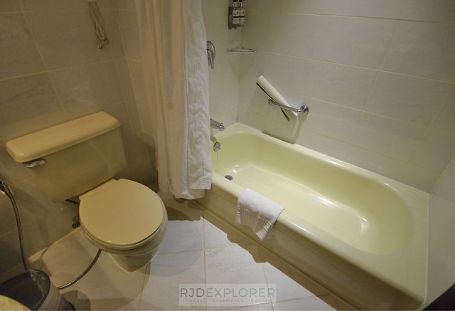 Next to the massive wooden cabinet having hangers, laundry bag, and safety deposit box is a countertop. There’s no microwave available but you can use the facility just in case you want to have food delivered to your room or avail other food deliveries. We utilized the fridge for the Coco Milk Teas we got prior to check-in.
