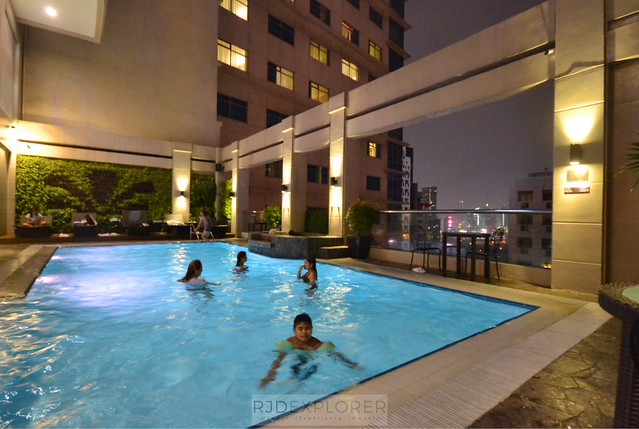 For guests to fully enjoy their stay, facilities of the hotel include a swimming pool on the roof deck, and a fitness center and spa on the 22nd floor. The pool is from 3.5 – 5.5 meters and a lifeguard monitors the facility to ensure guests safety. When we had our swimming time, he even offered and asked my nephew to wear a floater. A Jacuzzi by the pool is another alternative.