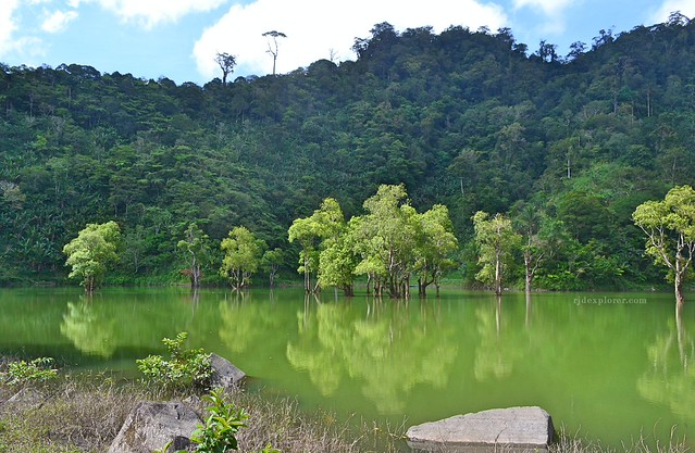 From the deck, the emerald color of the lake stands out from the lush landscape that surrounds it. I saw a tent perched on the shade of trees, I confirmed from the caretakers that overnight camping is allowed at Php50 camping fee per tent. It would be a great experience to spend a night in the middle of nowhere with bushes of trees and calm lakes.