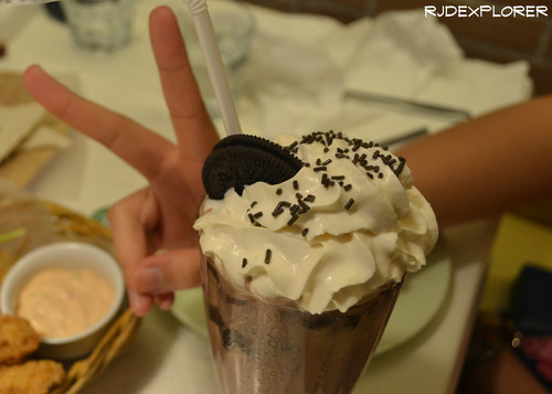 Our boss ordered a Margarita Pizza, Chicken Fingers, Beef and Mushroom quesadillas, Chili Cheese fries and Peanut Butter Milkshake. Eka added a slice of Mango Bravo and Double Chocolate milkshake. Thanks for the dinner boss 🙂
