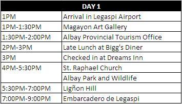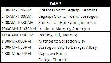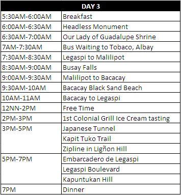ALBAY AND SORSOGON ITINERARY
