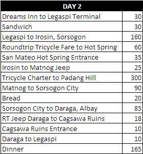 Legaspi to Sorsogon – You can get to any point in Bicol from Legaspi Grand Central Terminal. Non aircon bus from Legaspi to Bulas, Sorsogon has trips as early as 6AM, fare is around 150 and travel time is around 3 hours.