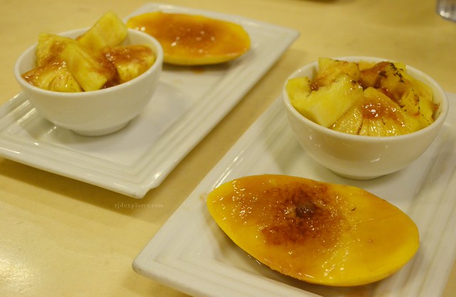 For soup we got bowls of Sinigang na Baby Prawns (PHP192), Sinigang na Tangigue (PHP210), Baked Scallops (PHP147), Balut Sisig (PHP135) and Green Mango with Bagoong (PHP69) for appetizer, Ngohiong (PHP72) and Laing (PHP99) for veggies, Ox Tail Humba (PHP225), Kare-Kare (PHP275) and Crispy Pata (PHP389) under the meat galore, Tuna Belly (PHP239) and Fried Tuna Fingers (Php215) for another seafood. For dessert, we sampled the new items on the menu: Budbud Turon (PHP79), Tropical Brulee (PHP89) and Ube Crisp Ala Mode (PHP99).
