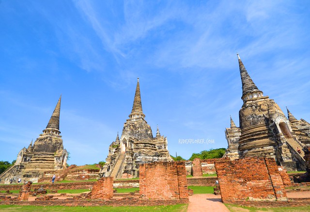 From the most important temple, we moved to the most outstanding temple of old Ayutthaya, Wat Phra Sri Sanphet. In the past, the complex holds a 16-meter tall gold-covered Buddha image but was destroyed and melted down when the old capital had fallen in 1767. The world heritage site today has the 3 main stupas containing the ashes of Kings Boroma-Tri-Loka-Nat, Boroma-Rachathirat III, and Ramathibodi II. It was a royal temple of the Kingdom of Ayutthaya yet monks were not allowed to reside and only invited during special occasions and rites. Entrance fee for foreigner: 50THB.
