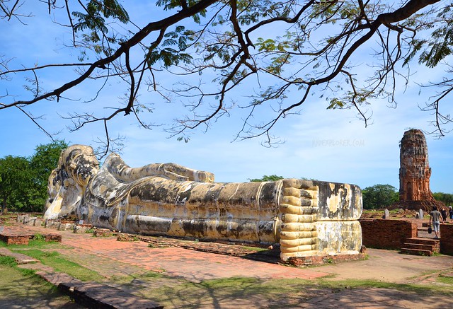 If you’ve been to Wat Pho in Bangkok and was amazed by the massive reclining Buddha, Ayutthaya has also its own reclining Buddha. Unlike with the image in Wat Pho, the The Phra Buddha Sai Yat is not enclosed yet there are traces of octagonal pillars, suggesting that it was once encased by a Vihara. The structure is 42-meters in long and made of bricks and covered with plaster. Free entrance fee.