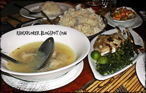 Once seated, we eagerly checked the menu and decided on a seafood platter. It included a crab dish, sizzling squid, and grilled fish. To balance the seafood, we ordered ensaladang talong, garlic rice, fresh fruits, and their soup of the day, which was molo.
