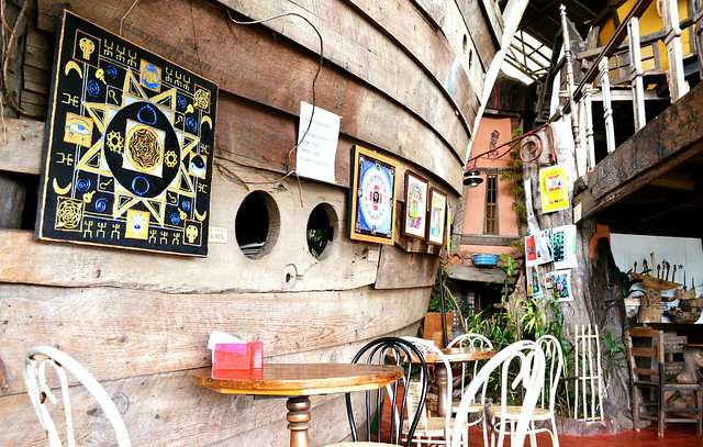 They are located on the uppermost floor of La Azotea Building along Session Road. The restaurant is also dubbed as a “Paradise in the City” because of the blend of nature and cityscape. It is owned by Eric de Guia also known as Kidlat Tahimik, a famous film director, writer and actor from Baguio. Different art installations and paintings are all over the place.