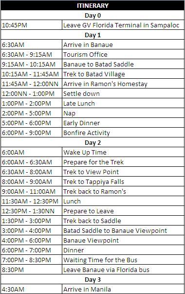 BATAD ITINERARY