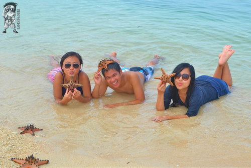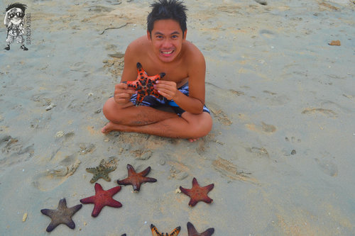The nap re-energized me and I started to swim in the shallow part of the water. I just learned to mobilize in the water after our company outing, kudos to my workmates who patiently taught me to swim. A group near us started to spot starfishes in the water and one of them dives to get one. I also tried to go to that spot and was amazed by the number of starfishes having different sizes, colors, and texture under the water. I tried also to get one. And there were a lot!