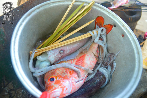 What’s funny here is that the tents being rented are only for two people and we’re 3 but only rented one. I didn’t imagine that I can fall asleep on 3 monobloc chairs. I woke up at 6 o’clock chasing the sun which was already high, so no sunrise shot also. Based on some blogs, you can buy freshly caught seafood early in the morning on the island before fishermen bring them to the market in the mainland. I went out to buy some seafood for breakfast. I got 2 pieces of fish and 5 pieces squid for only 182 pesos.