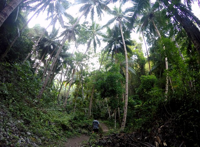 We made our way on the other side of the road and by chance met the Barangay Captain on his way to the entrance booth to the falls. He greeted us and asked for the Php10 entrance fee. After handling the coin, we snaked through the narrow trails bordered by towering coconut trees and bushes of plants going to the falls.