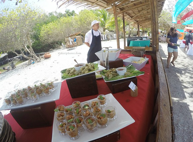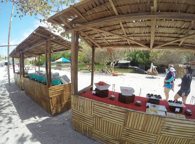 We arrived in the island past noon and while waiting for our room to be prepared, the resort staff at the front office offered us the ongoing lunch buffet for day trippers. The lunch buffet is set-up by the beach on the west side of the island. The different segments of the buffet spread were cutely arranged in small kiosks. They have appetizers, pasta, chicken, fish and pork dishes. For dessert, we had Marshmallow Chocolate cake and Walnut Brownies, and watermelon and papaya for fruits.
