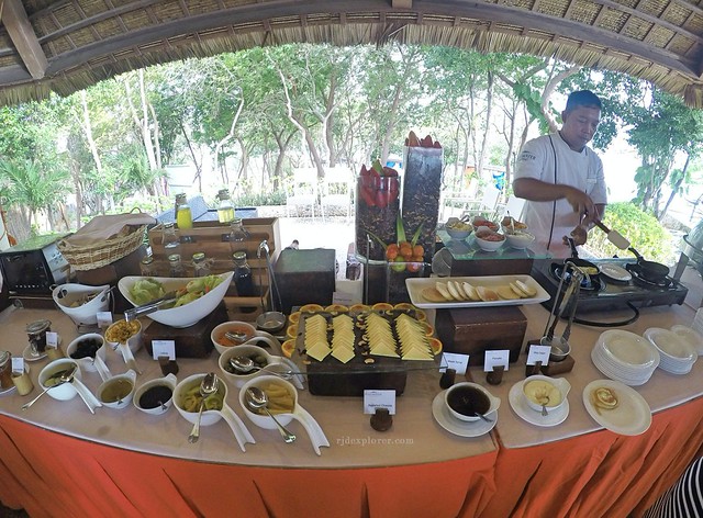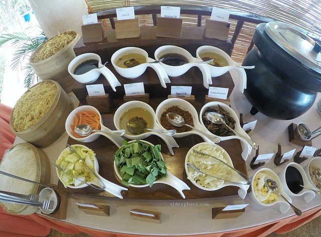Breakfast buffet, being served in the pavilion, is a fusion of Filipino and some other cuisines. Cebu staples like chorizo and danggit together with corned beef, and noodles were served as main viands. Aside from that, they have cereal section with cornflakes, fruit loops, coco crunch, some dried mangoes, pineapples, raisins, and cashew nut. Salad section presents the different vinaigrettes and dressing with the cold cuts and cheeses on the side. Next to the chef who can make your omelet, is the soup section with three kinds of noodles, numerous sauces and oils, and toppings.
