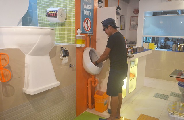 While waiting for my food, I played around with their photo area and asked a crew to take photos. I washed my hands in the urinal that serves as the washing area and took photos in a big toilet bowl and a bigger urinal. I was curious and asked if they have the real toilet, which the crew immediately answered yes, on the third floor.