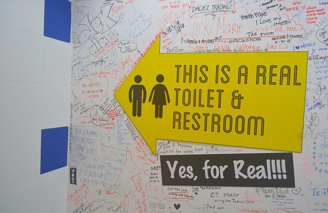 Sun just disappeared from the horizon and I was walking from Diniwid Beach back to White Beach when I thought of a new restaurant listed down on My Boracay Guide Book I got in Caticlan Jetty Port. As I walked along Station 1, I tried to locate the place as it was stated to be found in that area. Passing by Cocomangas, the bar known for the ‘Still Standing at 15’, I saw the colorful sign of Boracay Toilet.