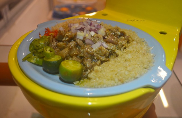 From the selection, I ordered Pork SHIT-sig, a scoop of rice (which is not yet included in the viands), and iced tea. I asked the crew if there are any flavors available for the beverage but he said that it’s just the regular one but they’re adding something to it, hopefully the secret thing is not urine. LOL.