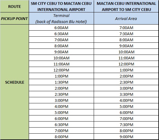 Here’s SM MyBUS daily schedule from and to Mactan Cebu International Airport: