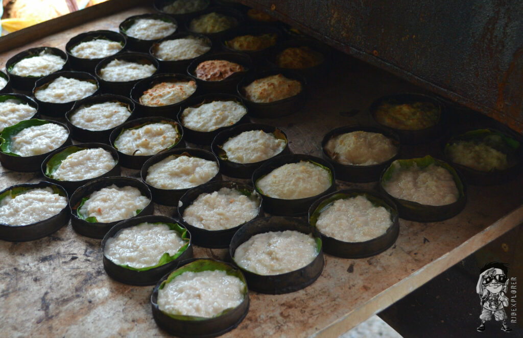 From Oton, I took a jeepney ride to Molo where I was amazed by their church, Parish of Saint Anne. The church has a distinct appeal to capture everyone passing by. It is the only Gothic church in the Philippines outside Manila and has castle-liked bell towers and a very elegant wooden door. Since Molo is known to be the Athens of the Philippines, a structure was built in front of the church having human-sized figures of some Greek goddesses. While walking near the plaza, I was offered by a vendor to try their own version of bibingka. Smaller in size compared to the usual bibingka, cooked in a cut tin can.