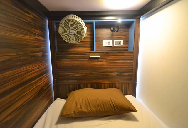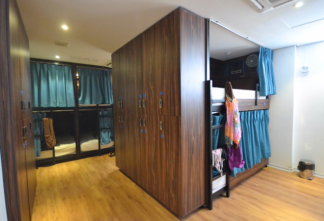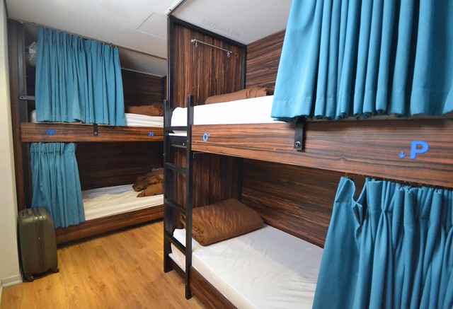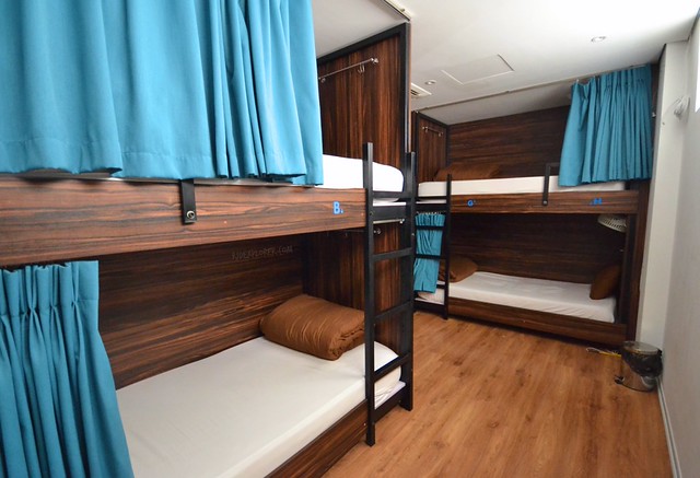 Reservation I got was placed in the shared room on the 7th floor. Each bed in the 16-bed air-conditioned room is equipped with an above-normal mattress, pillow and duvet covered with brown cases, fully-covered with a curtain, a personal fan, reading light, two universal power sockets, a USB port, and a foldable desk. My bunk, letter F, near the wall has an added space where you could place some of your stuff.