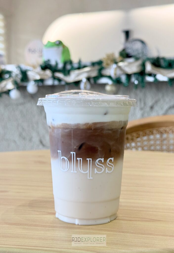 Blyss Cafe has two floors, both designed with tropical and earthy aesthetics. Wooden fixtures, plants, and warm tones create a nature-inspired backdrop perfect for photos.