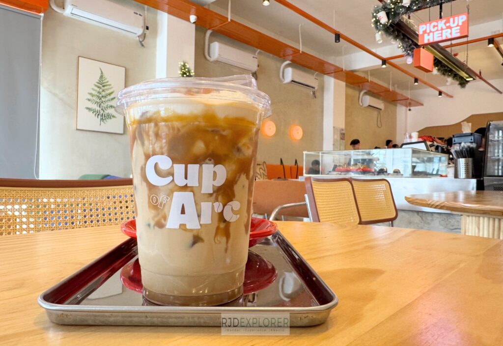 Cup of Arc has a colorful, energetic vibe that immediately makes you want to stay. The layout is long and layered, with a playful foyer, middle tables, and a bleacher-style lounging area at the back. Seating at the rear can feel limited when crowded, but the space feels cozy overall.