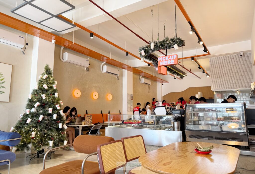 Desserts deserve special mention. I tried the Bibingka baked in banana leaves. Unlike usual rice-flour bibingka, this feels like a buttery cake—moist and comforting. Other treats include the Ube Coconut Revel Bar with Pistachio (Php180), Brownie Tiramisu (Php255), Cream Cheese Leche Flan (Php150), Cold Choco Waffle (Php180), and cream cheese bars in Pistachio Banana, Walnut, and Oreo flavors. Pair these with coffee for a satisfying snack session.