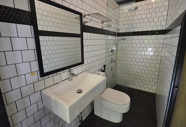 Toilet and shower are located on the same level equipped with overhead and handheld shower. Shampoo and body wash are available in wall-mounted dispensers. Only two cubicles are available on the floor but more shower areas are on the ground floor of the hotel.