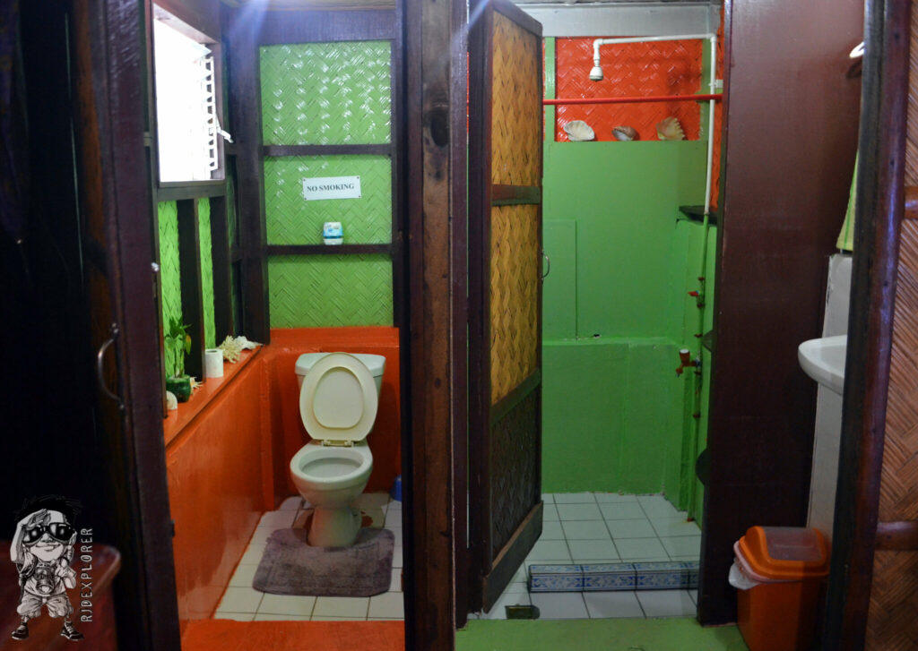 Flooring of the house is made of bamboo so expect that when someone walks around, a sound will be made that is really annoying sometimes. You may also hear the staff chatting loudly during their breaks since the wall is woven bamboo. Toilet and bathroom are separate and there is no water supply on the toilet and only tissue paper is available. The rooms have no trash bins so I needed to go to the bathroom (located inside the guesthouse) everytime I needed to dispose something.