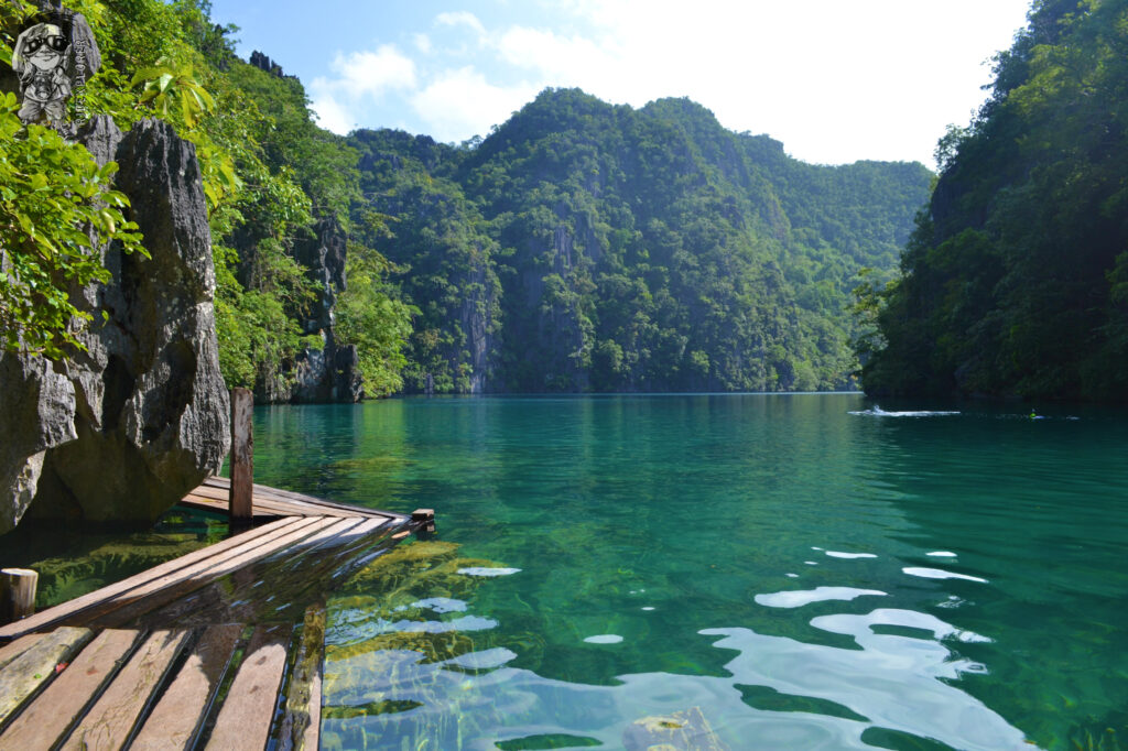 On the peak of the trail, we stopped to take a picture of the most photographed spot in Coron (the one you see in promotions and most fliers of different travel agencies). We continued our trek and from that point, we can already see the lake. A pathway made of woods was already available surrounding the threshold of the lake. Since the water is clear, you can see the rocks underneath it. The lake is deep so I put on my life vest first before throwing myself in the water.