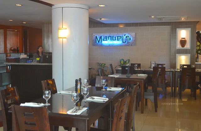 There are four breakfast options available in Manuel’s: Filipino (Php250), Continental (Php200), American (Php250), and Hawaiian (Php250). I was stoked by the Filipino set because of the danggit and longganisa but I wasn’t able to resist the bacon on the American platter. American platter includes a choice of fresh fruit or chilled juice, two eggs, choice of bacon, ham, or sausages, toast with butter, jam, and marmalade, and brewed coffee or hot chocolate (sikwate). I was disappointed by the toasted bacon, and the cold bread wasn’t able to melt the butter. In addition, the sikwate was unsweetened that I was forced to put all the sugar packets available on the table.