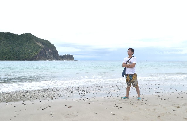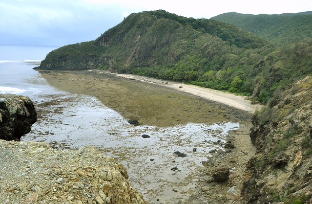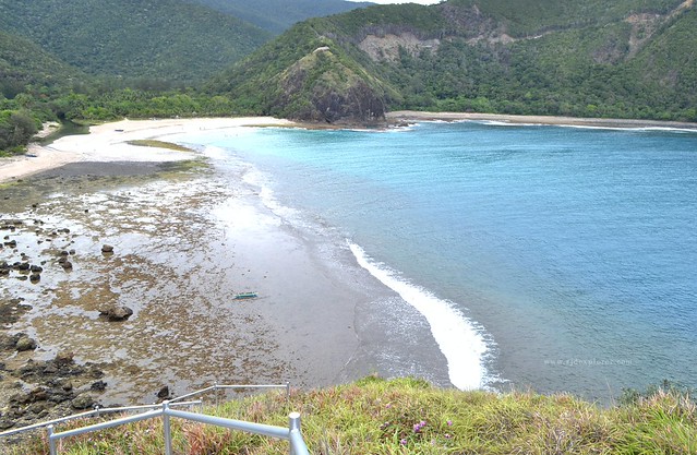 The guide convinced us to have a short trek to the cliff and visit the lighthouse. The modern lighthouse, which sometimes blends with the clear horizon, is somehow similar to a gnomon of a sundial but has a triangular base. The trek starts from the beach, traversing a river flowing to the sea, and surviving the canopy of wild pandan plants. This will lead you to a stairway that gives a panoramic view of the stately cove.