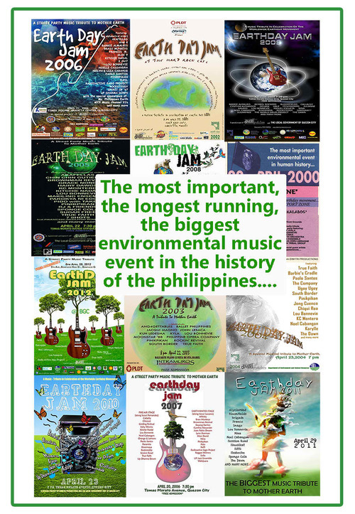 Earthday Jam started 12 years ago by Dimitri Productions with executive producer/eco-artist Lou Bonnevie to use music and entertainment as a medium in inviting everyone to participate in the advocacy of the group in bringing up the critical issues with regards to caring for the environment and Mother Nature.