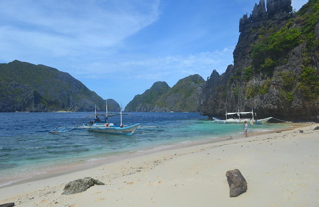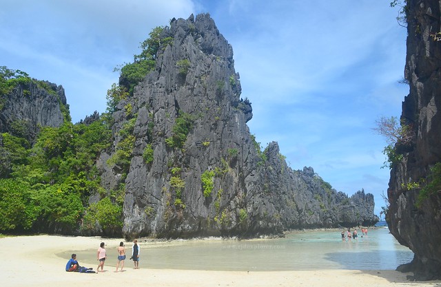 Facing the beach, the clear waters perfectly blend with the limestone cliffs and the blue horizon on the background. The short strip of beach is only a stop for tourists for some photo ops or sun basking. We had the other route going out of the beach by traversing a mini cave that led us to the open sea, with the higher and fiercer waves. With this, we had some bruises on our way back to our boat. For us to distract ourselves on our wounds, we focused on arriving on our next destination still in Matinloc Island.
