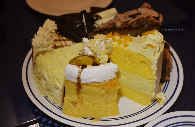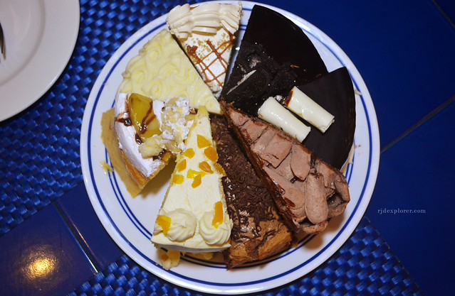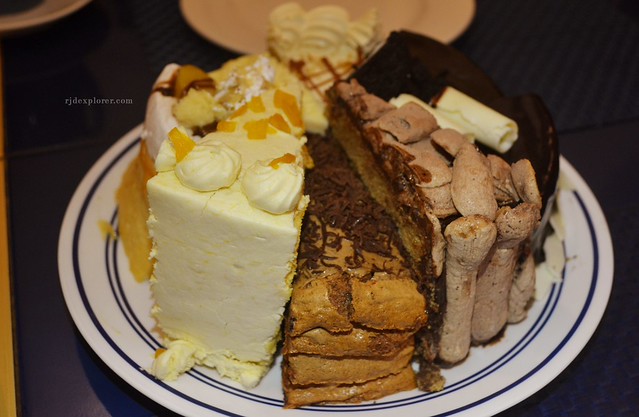 Dessert time! We went to see the chiller and we were overwhelmed with the dozens of cakes to choose from. We had a great idea in mind and I was able to make it possible. We ordered 8 slices of different cakes and asked the crew to assemble it into a single cake, and tagged it as the ‘cakes of happiness’. One round of cake, 8 different flavors to try.
