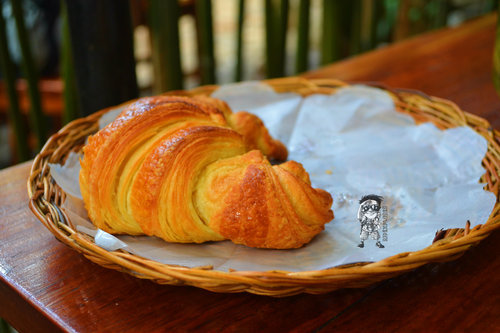 I ordered an Arabica Coffee and a croissant. The Arabica coffee is served with muscovado sugar, a shot of fresh milk and a piece of balikutsa. Balikutsa is an Ilocano local candy which is ultra sweet made from cooked, molten and sticky sugar cane molasses prolonged white and “curled.” The balikutsa sweetened the very strong Arabica coffee and blends perfectly with the croissant.
