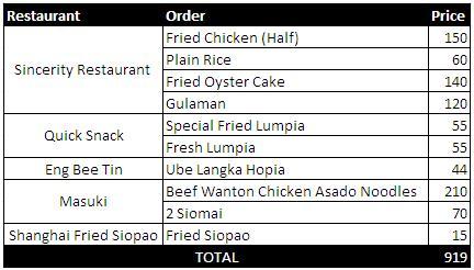 It started to rain when we left Masuki. Going back to LRT Carriedo, we passed by Shanghai Fried Siopao and bought one. I’m already full so I decided to bring it home. We spent a total of Php 919 for the entire food trip although we only checked out some of the places to eat.