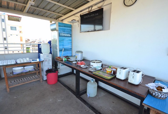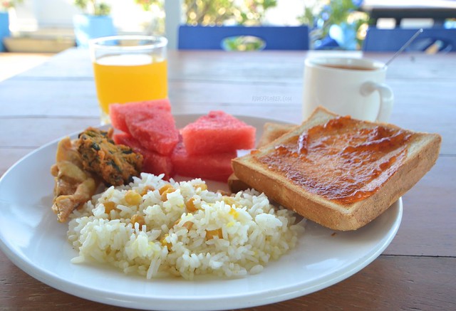 Breakfast included in the rate is served every morning on the rooftop. They try to vary the food every day so guests can enjoy the meal if they’re be staying for few days. You can have bread and spreads, rice with beans, vegetable fritters, fruits, tea, and juice.