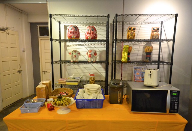 A simple breakfast is part of the booking. From 7 AM to 10 AM, the staff will fill the table with items like coffee and Myanmar instant tea mix, a basket of bananas, bags of loaf bread and bottles of spreads, and stir-fried rice or noodles. If you have your own food, a microwave oven is free for everyone to use.