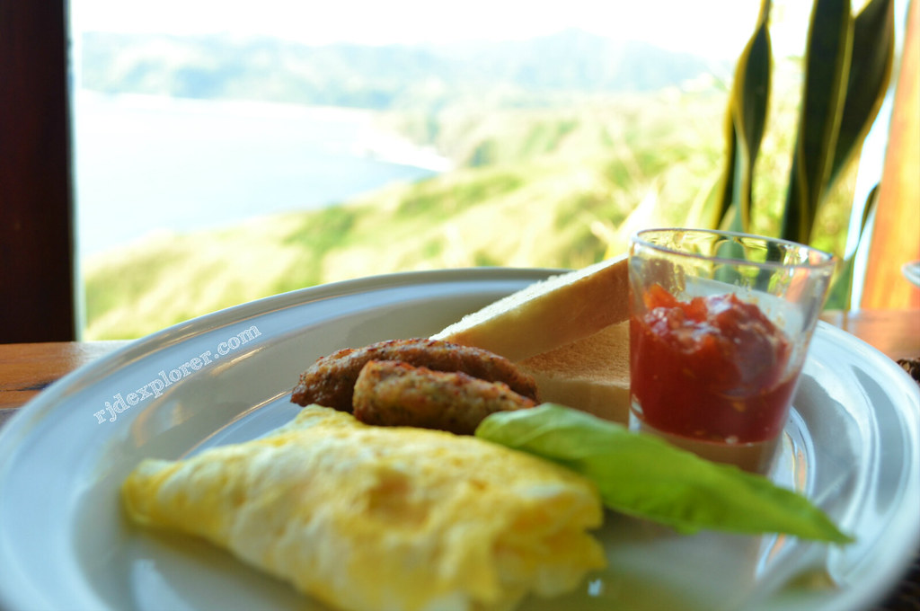 We inquired from a staff of the lodge if they offer breakfast for walk-ins. Since there were fewer guests having breakfast at that moment, we were allowed to enter. We found ourselves in the dining area with a panoramic view of the east side of Batan Island. We tried their Continental Breakfast with homemade longganisa, fried egg, bread served with homemade tomato jam and tuna spread, and coffee on the side.
